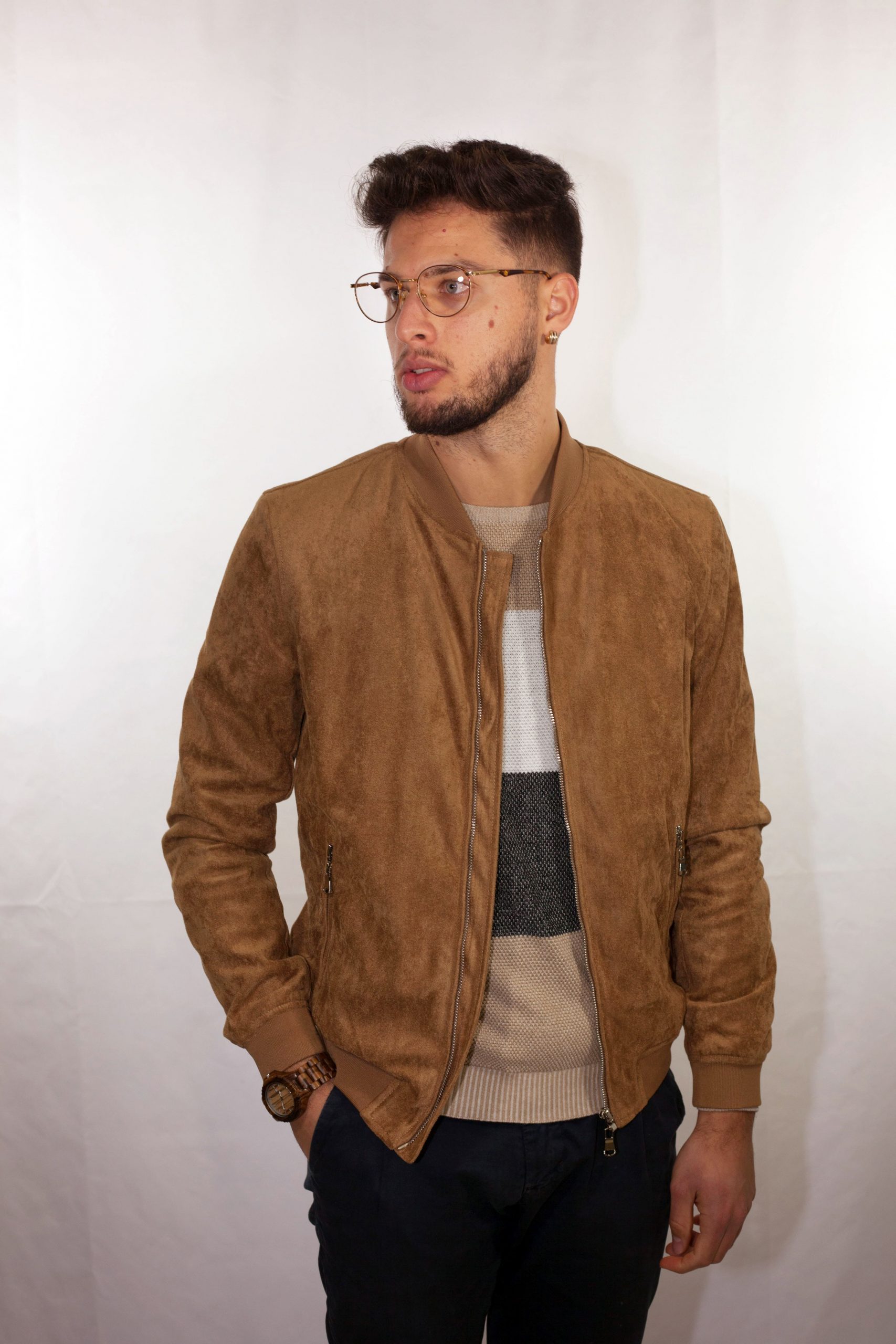 Pratico e versatile questo giubbino è ideale per l’utilizzo giornaliero. Il particolare tessuto in “eco-camoscio”, di altissima qualità, è ideale per un look casual e di tendenza.