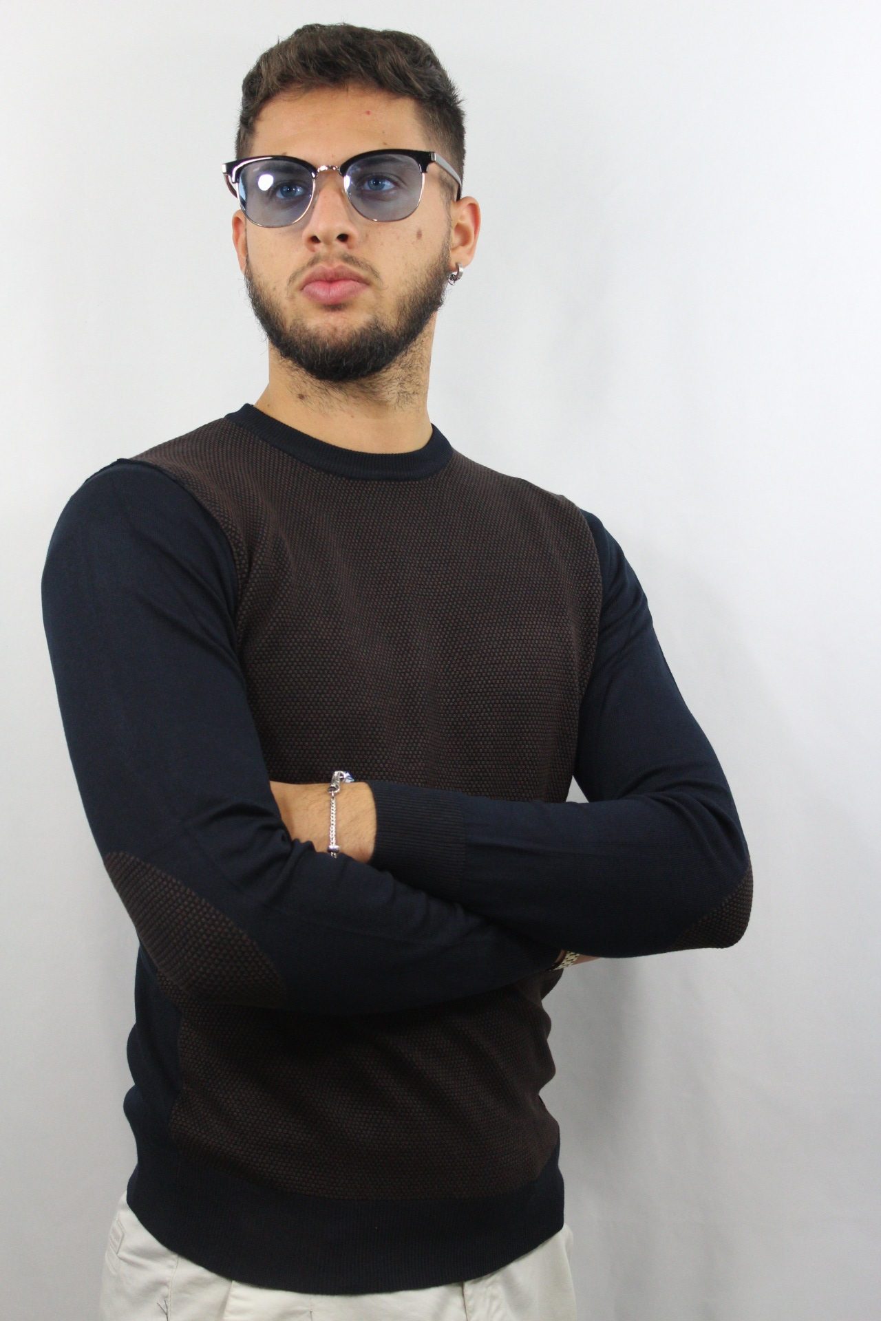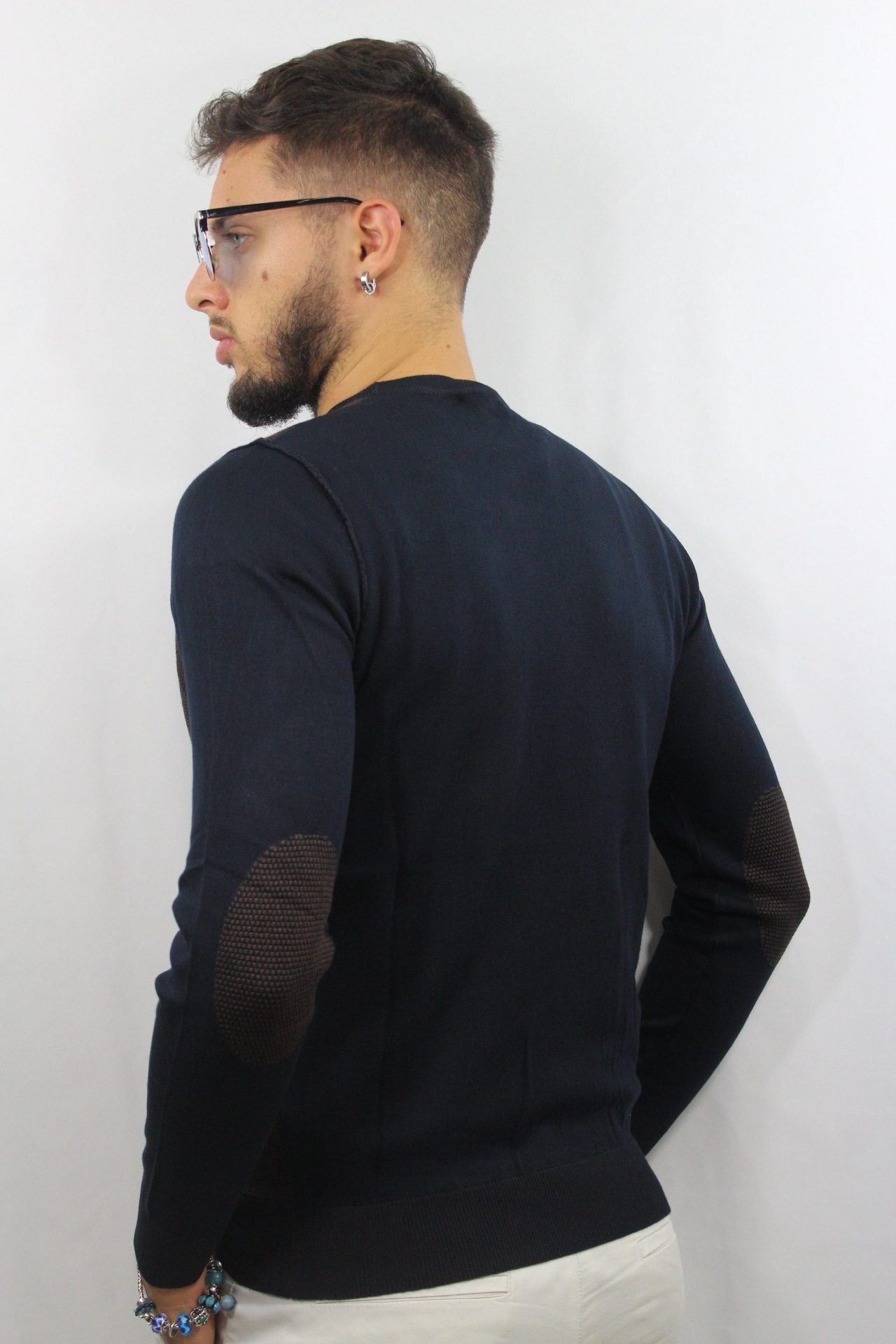 Maglia micro lavorata con toppe